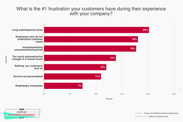 For B2Bs especially, having an online presence and a solid customer experience strategy will not only benefit them in the present moment, but also in the long run. With regard to customer experience, the chart below from hotjar.com, gives us an idea about the major frustrations customers face according to customer experience professionals. Before the ‘new normal,’ we can note that the top three problems were longer response times, not understanding customer needs, and unresolved issues.