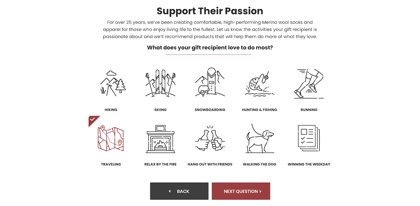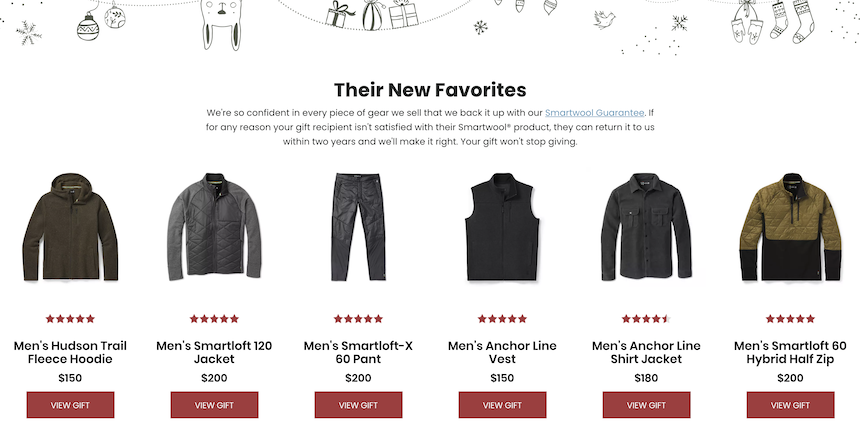 As the name suggests, Smartwool is all about wool specifically suited for outdoors and performance durability. They have a pretty big range of products and hence they use a gift finder to target the holidays. This brand smartly combines seasonal needs with passions, hobbies and successfully personalizes the customer journey.