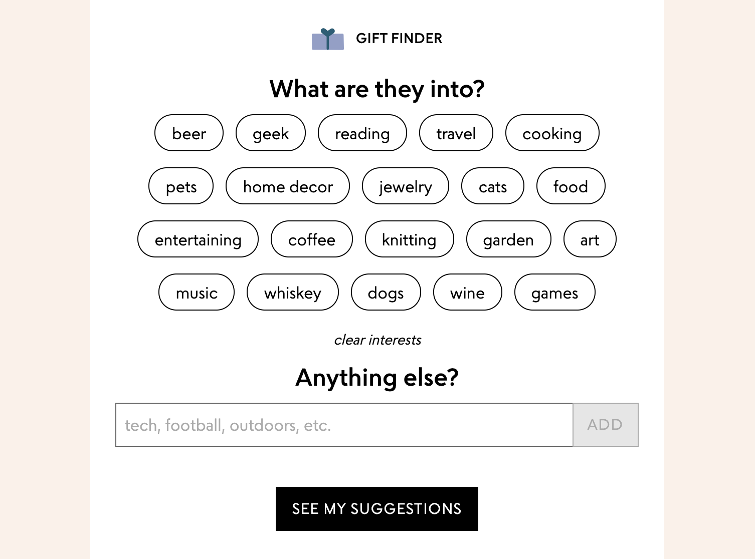 Uncommon goods gift finder