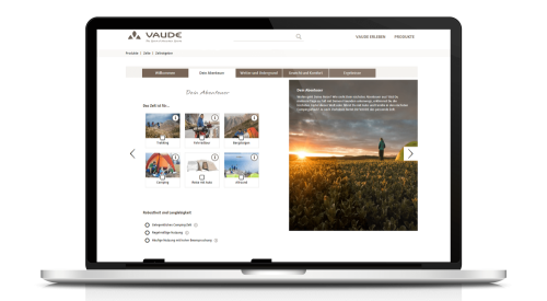 The Vaude Tent Guide is the ultimate advisor tool for online customers. It asks simple questions to understand the smallest of needs and keys in factors that the customer may not have thought of before. The guide provides explanations on complicated topics and allows users to compare the advantages of different tents.